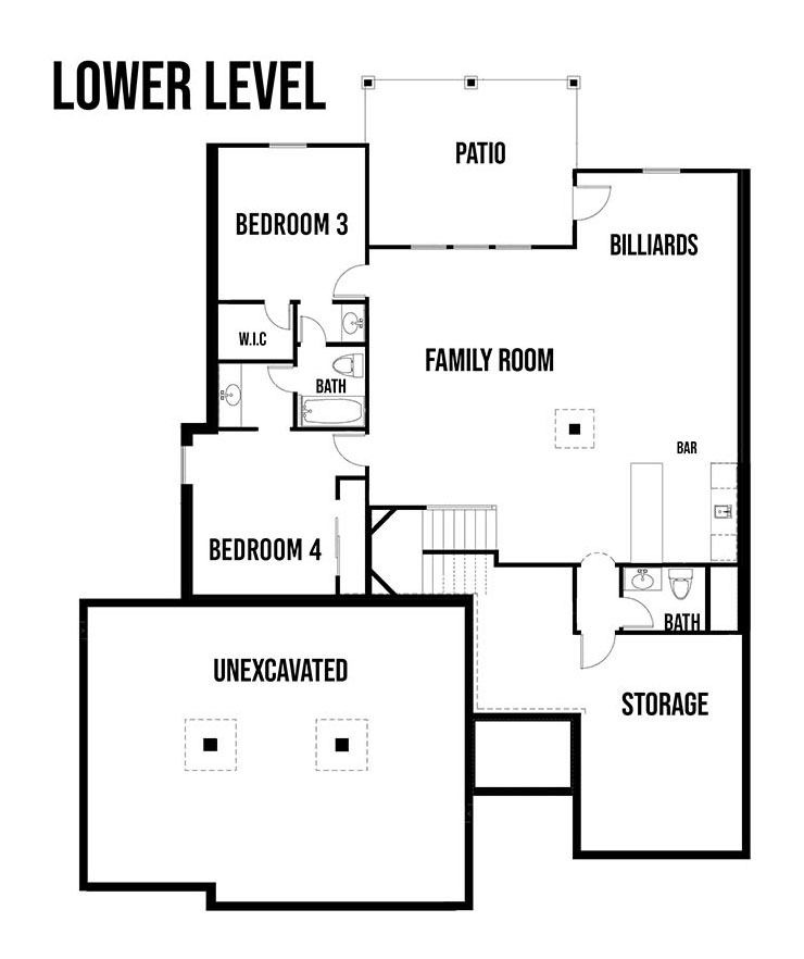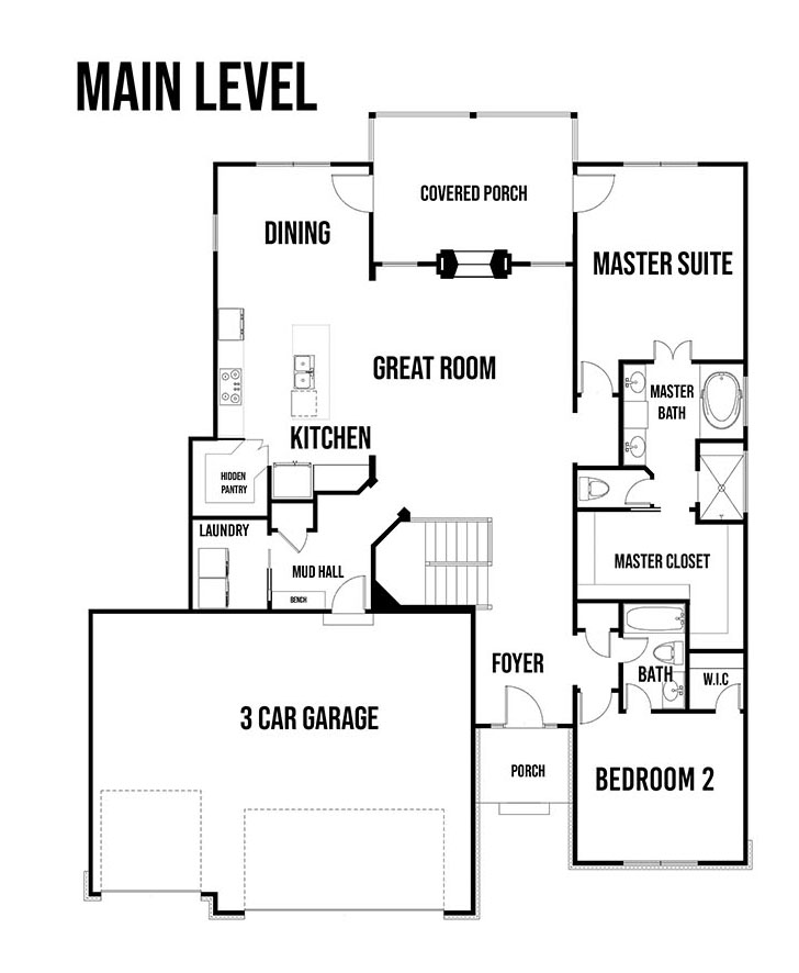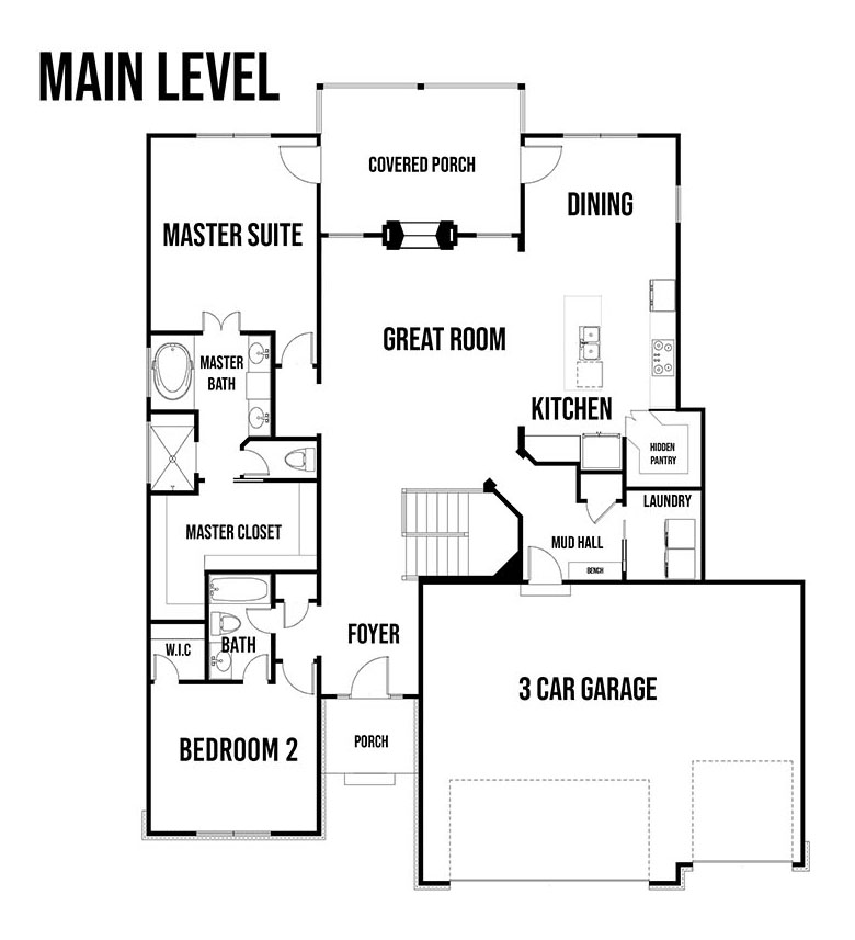 This popular floor plan is all about wide open spaces and plenty of bedrooms for everyone. The great room is open to the kitchen and dining area with a double-sided fireplace which can be enjoyed indoors or on the covered deck. High ceilings and large windows make the great room feel even bigger. A generously-sized island and pantry, and loads of cabinetry make the kitchen great for family and entertaining. At the garage entry is a mud bench and closet for plenty of storage options. The master suite has a four piece bathroom and an extra large closet. The main floor covered deck is accessible from the dining area and the master bedroom. The main floor also has a guest bedroom with complete bath. The lower level has tons of rooms for an extra large family room, a sit-down bar, a powder room, two extra bedrooms and a shared bath with private vanities.